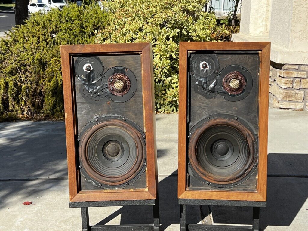 It’s basically an 8″ fullrange driver — looks like an Altec 755C — with some bass support. The Altecs, which are now legendary, at the time were basically designed for public address use. You might have said the pledge of allegiance in elementary school with a 755C.