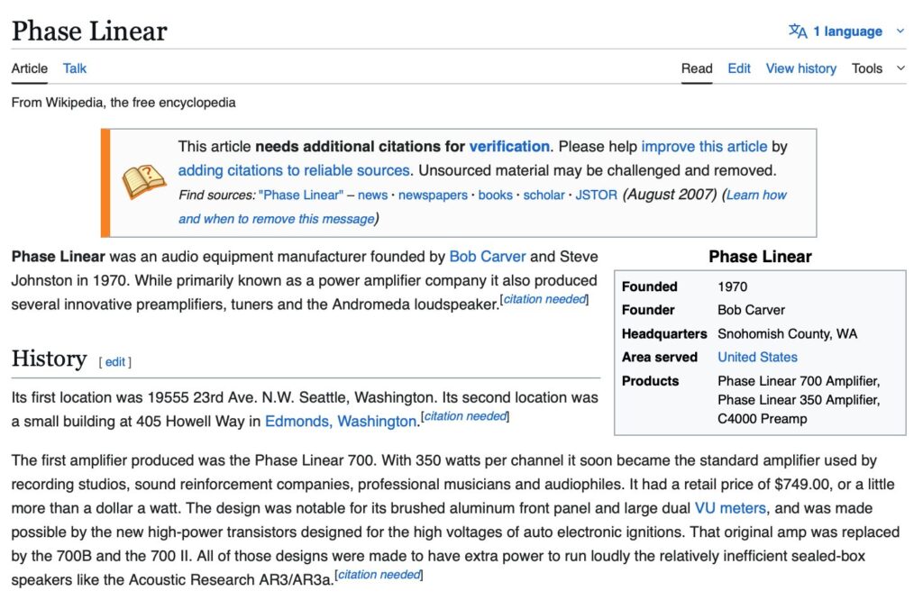 But, you couldn’t hear this easily with the inefficient cone speakers of the time. If you hooked up a big horn system — like that Tannoy Autograph — to a Phase Linear amplifier, it was complete audio vomit. (If you are not quite sure what I mean by “audio vomit,” think of a wine by Franzia.) The result was that horn speakers became even more unpopular, although they were already unpopular due to their size and cost.