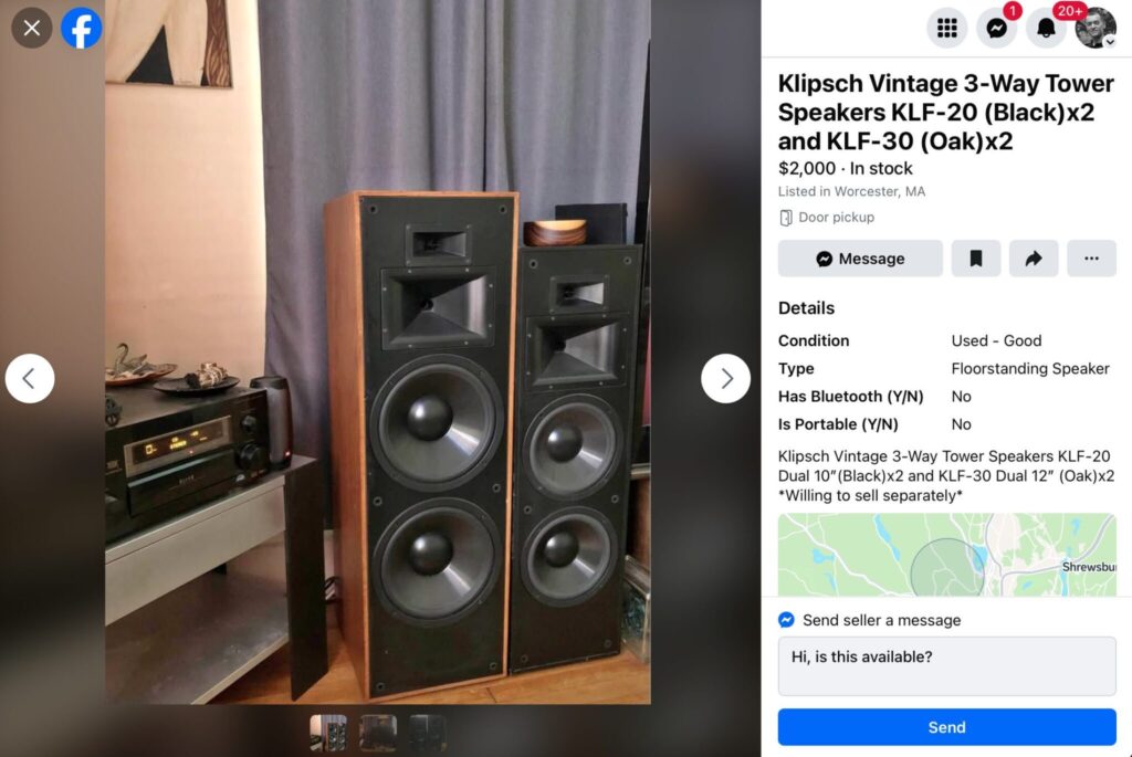 Today’s budding audiophile could find themselves some Klipsch KLF30s used, in their neighborhood, for about $1200, and have fun playing with that. I wouldn’t say this is “the best!!!,” but it is pretty good for $1200, and will give you an idea of what is possible when you escape the shoebox speaker plantation. After you fool with it for a few years, you can probably sell it for more than you bought it for.