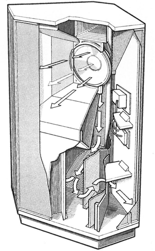 Efficiency was still high, around 98db. But, that is still a good 5db or so less than the Klipschorn. Basically, it would require about 4x as much power to make the same sound output. But, we had power now, from those 20-40 watt pentode amplifiers. Also, it was smaller and cheaper, so you could have two of them, and it wasn’t stupidly expensive or stupidly large.